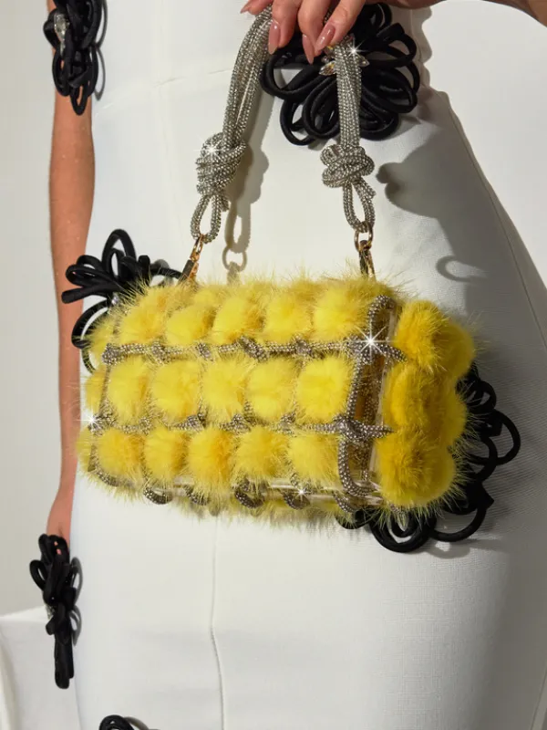 Indulge in pure luxury with our Tristano Faux Fur Crystal Bag! This stunning bag features a plush faux fur exterior and elegant crystal detailing, making it a must-have accessory for any fashion-forward individual. Elevate your style and make a statement with our Tristano Bag!