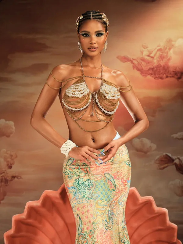 Elevate your lingerie collection with the Akuji Pearl Beaded Chain Fringe Bralette. Adorned with delicate pearl beading and dangling chain fringe, this bralette exudes elegance and sensuality. Embrace your femininity and add a touch of luxury to your wardrobe with this stunning piece.