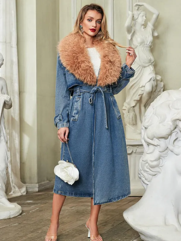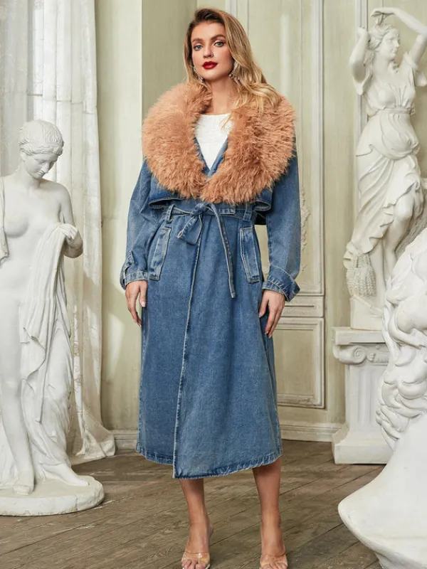 The Ishtar Faux Fur Collar Denim Coat is the perfect blend of style and warmth. Made with a luxurious faux fur collar and high-quality denim, it’s both fashionable and practical. Stay cozy and chic this winter with this must-have coat.