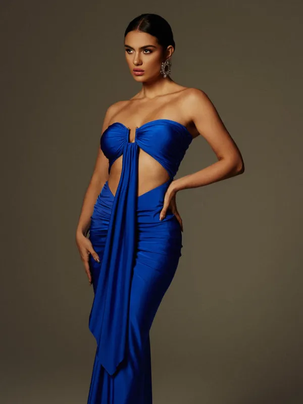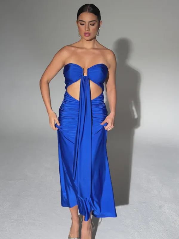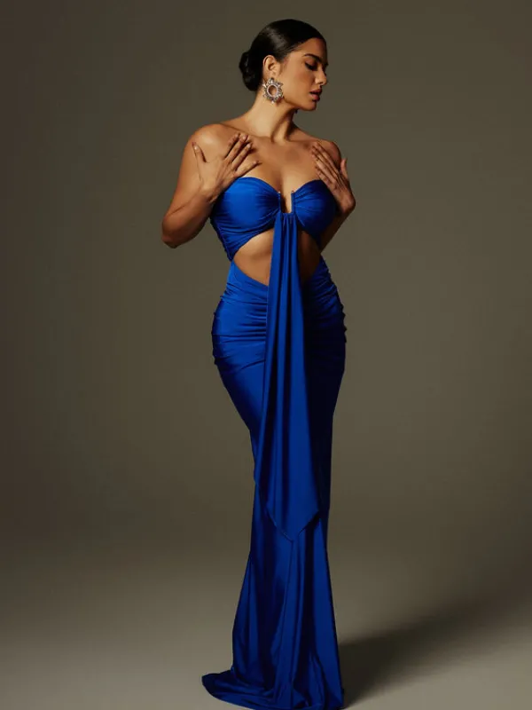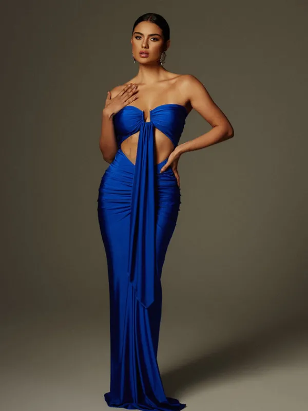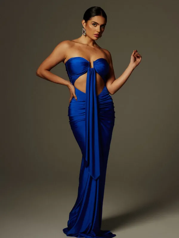 Unleash your inner goddess with our Arlyn Strapless Draped Cutout Maxi Dress! The elegant cutouts and draped design will accentuate your curves, while the strapless silhouette adds a touch of sensual sophistication. Turn heads and feel confident in this stunning dress for any special occasion.
