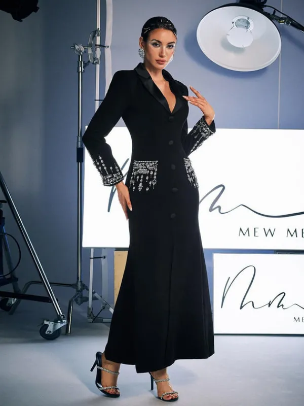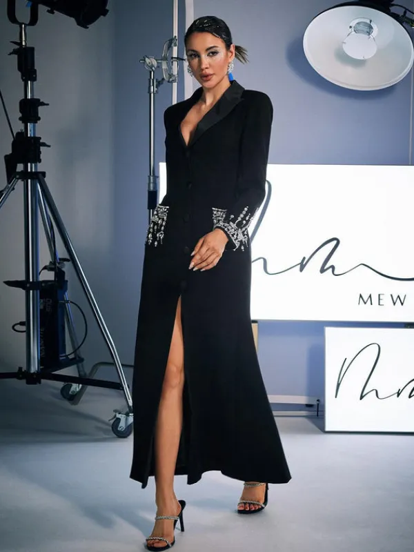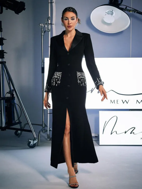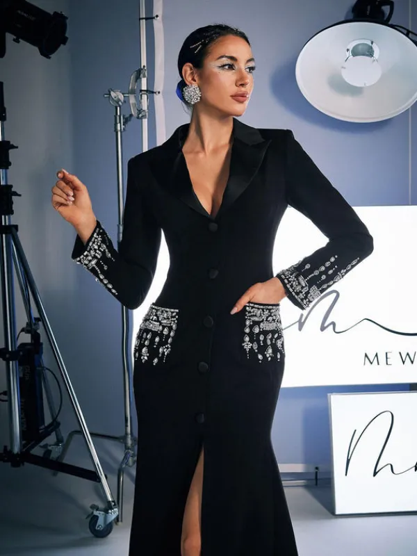 This glimmering Hassan Rhinestone Blazer Dress is a showstopper with its intricate rhinestone detailing. The perfect combination of elegance and edge, it’s sure to turn heads and make a statement. Elevate any occasion with the Hassan Rhinestone Blazer Dress.