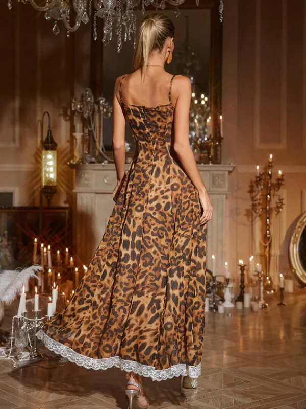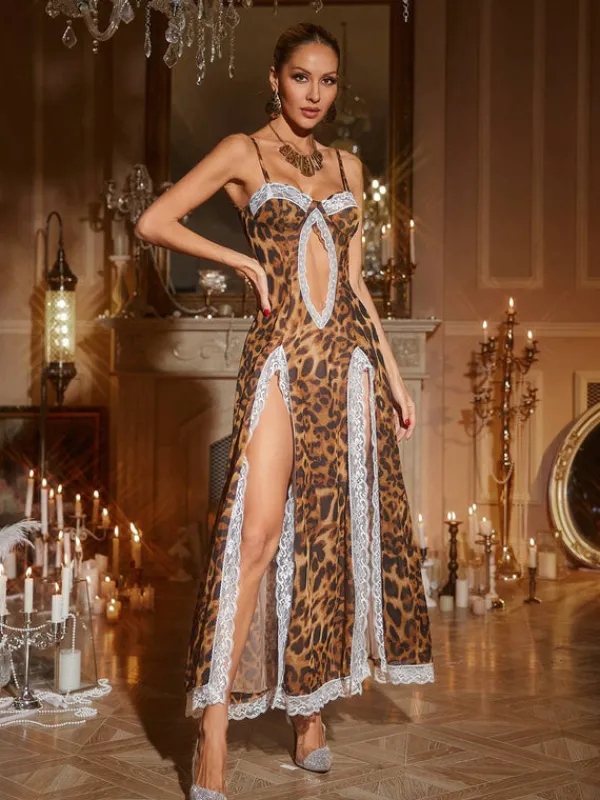 Unleash your wild side with the Kiran Leopard Lace Split Maxi Dress! This daring dress features a fierce leopard print and a seductive split, perfect for those who love to take risks and leave a lasting impression. Embrace your adventurous spirit and make a bold fashion statement with this must-have dress.
