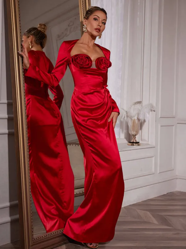Indulge in the luxurious feel and elegant design of the Ozuru Long Sleeve Flower Satin Dress. Featuring a charming floral print and smooth satin fabric, this dress is perfect for any special occasion. Its long sleeves add a touch of sophistication, making you stand out with confidence.