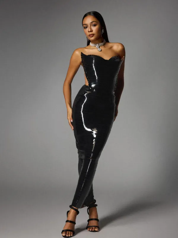 Get ready to turn heads in the Eadward Strapless Metallic Midi Dress! This stunning black dress features a sleek strapless design and metallic detailing, making it the perfect choice for any special occasion. With its flattering midi length, you’ll feel confident and glamorous as you make your grand entrance. Elevate your style game with this must-have dress!