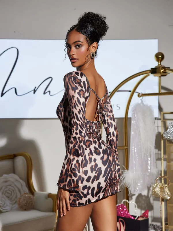 Dresses | Mini Dresses*Mew Mews Fashion Dosen Open Back Leopard Mini Dress
