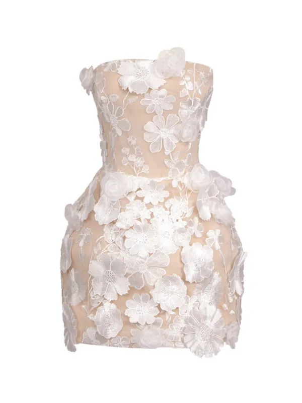 Get ready to turn heads in our Zeina Strapless Flower Embroidered Mini Dress! This stunning piece features delicate flower embroidery and a flattering strapless design, making it the perfect choice for any special occasion. With its elegant and feminine details, this dress is sure to make you feel confident and beautiful.