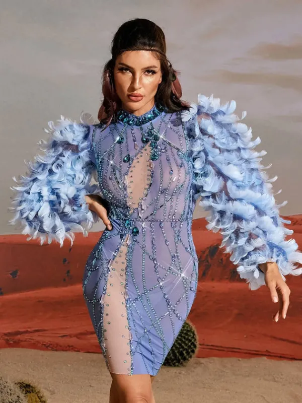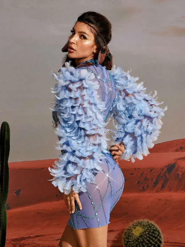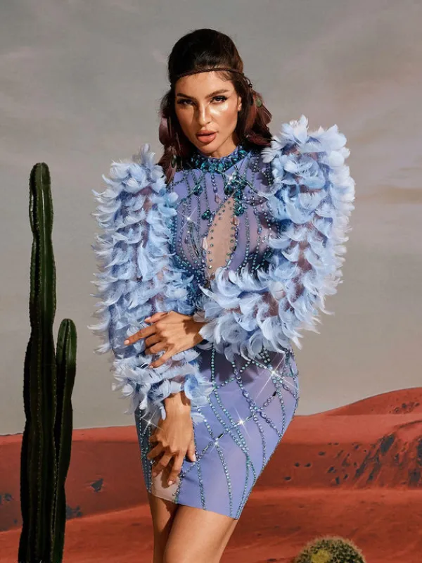Be the center of attention in our Platon Long Sleeve Feather Embellished Mini Dress! Featuring luxurious feather embellishments and a figure-hugging silhouette, this dress is perfect for any special occasion. You’ll feel elegant, confident and glamorous in this stunning dress!