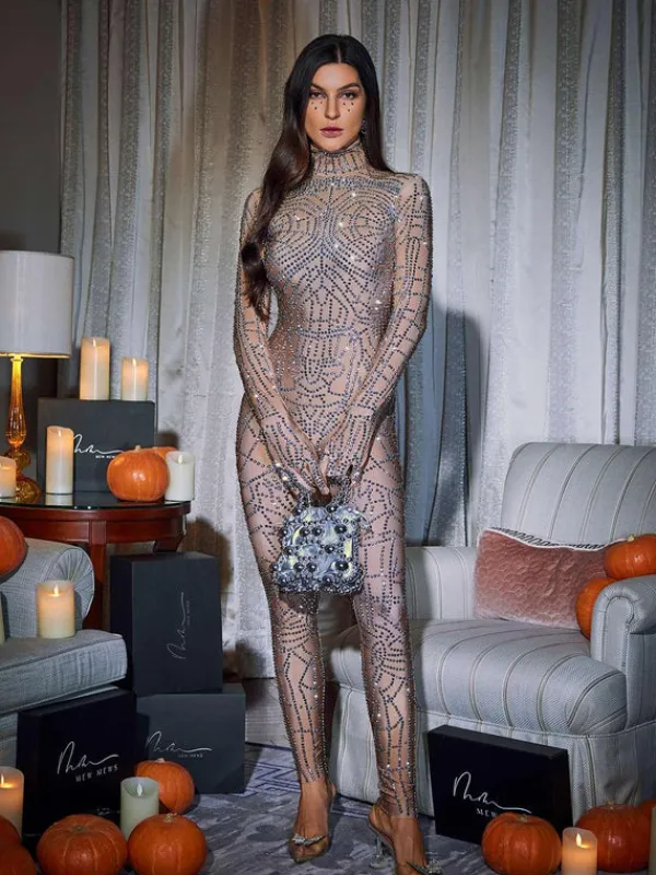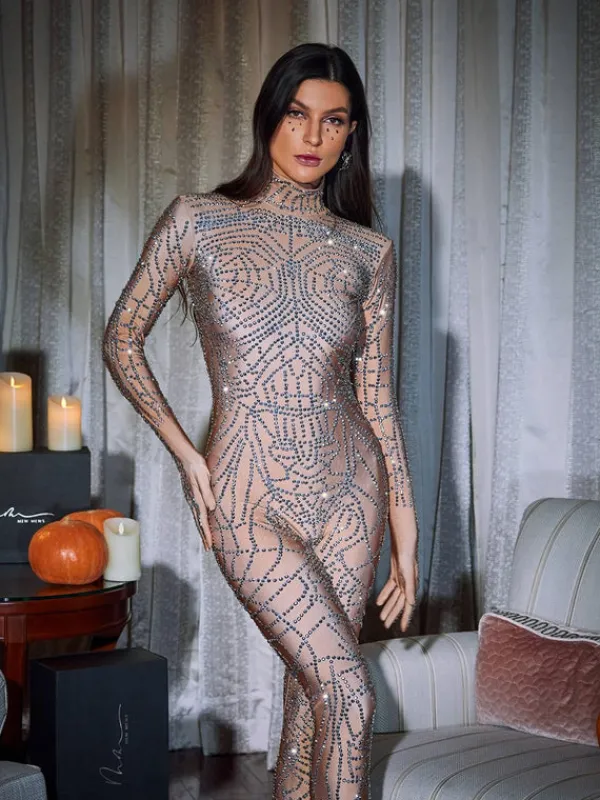 Unleash your inner fashionista with our Chimera Cobweb Rhinestone Jumpsuit. This stunning piece is adorned with intricate rhinestones that will make you stand out from the crowd. Made from high-quality materials, it is comfortable to wear and perfect for any occasion. Elevate your style and make a statement with our Chimera Cobweb Rhinestone Jumpsuit.