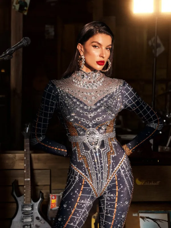 Unleash your inner fashionista with our Micaela Printed Rhinestone Jumpsuit! Designed with intricate rhinestone detailing, this jumpsuit is sure to turn heads. The perfect combination of style and comfort, it’s a must-have for any special occasion. Elevate your wardrobe and make a statement with this stunning jumpsuit!