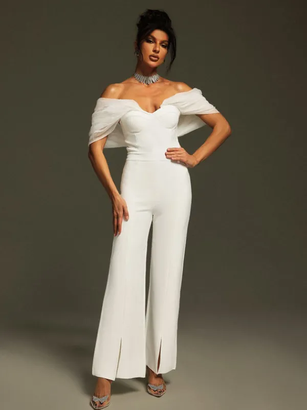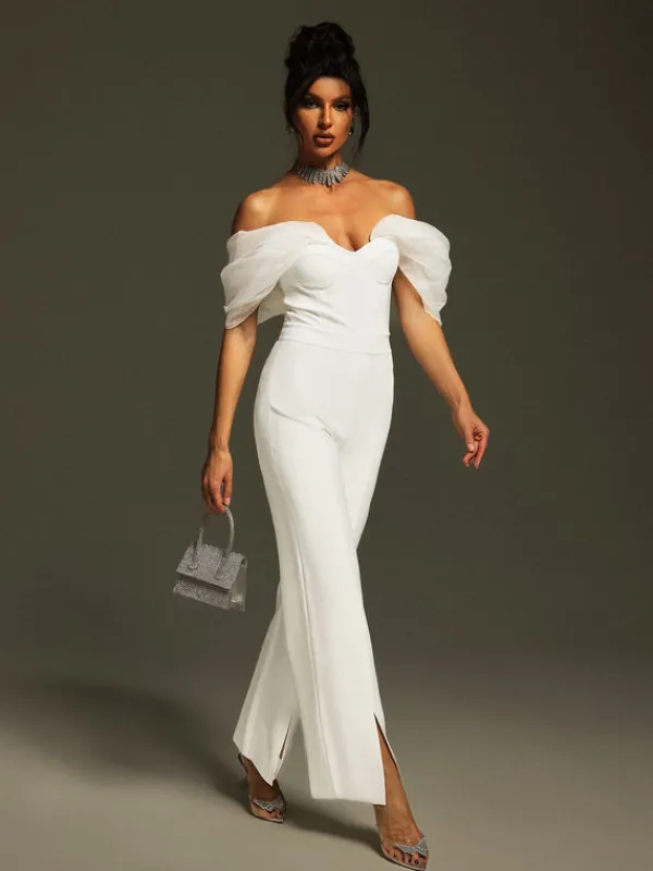 Introducing the ultimate Yexet Off Shoulder Bandage Jumpsuit! Show off your shoulders and curves with this stunning piece. Made with high-quality bandage material, it sculpts and flatters your body while providing comfort. Be the center of attention at any event with this must-have jumpsuit!