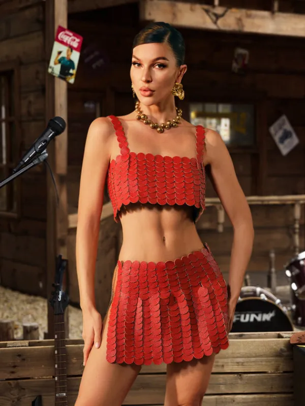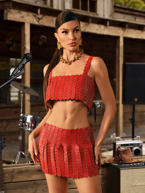 Elevate your style with our Mckie Leather Circle Chainmail Skirt Set! Made with luxurious leather and detailed with chainmail, this set exudes elegance and edginess. Stand out and make a statement with this unique and versatile set. Perfect for adding a touch of boldness to any outfit.