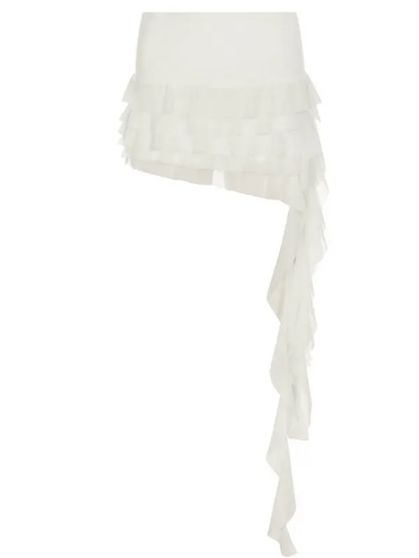 Elevate your style with the Brinzara Ruffle Draped Skirt in White. This unique and stylish skirt features beautiful ruffle details that add subtle movement and flare to your look. Made with high-quality materials, it is both comfortable and chic. Perfect for any occasion, this skirt is a must-have in your wardrobe.