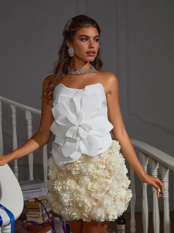 Embrace bold and beautiful style with our Bayard Strapless Flower Top in White. This eye-catching top is designed for the confident and fashion-forward individual. Its vibrant white color and strapless design are perfect for any occasion. With this top, you’ll feel empowered and ready to take on the day!