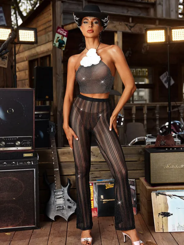 Sparkle and shine in our Hadya Flower Crystal Chainmail Top! This stunning chainmail top features intricate floral desig…